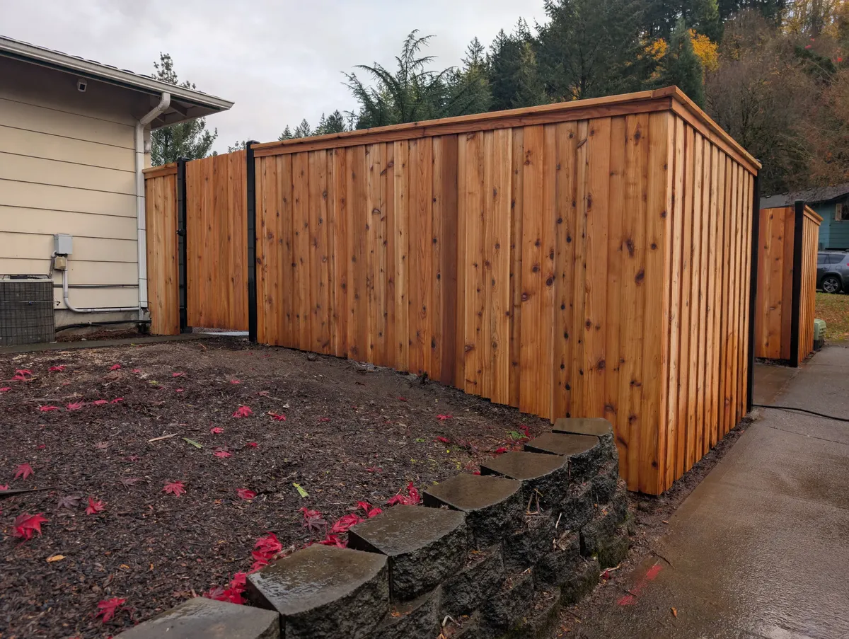 Cedar fencing isn’t just about defining boundaries – it’s about creating balance and respect between neighbors. A Good Neighbor Fence is thoughtfully designed to be equally attractive on both sides, promoting harmony rather than division. Unlike traditional fences that have a “good” and “bad” side, cedar fences can be built with a uniform, finished look that offers visual appeal no matter which side you’re on. This creates a shared sense of ownership and pride – allowing both homeowners to enjoy the beauty of their fence without compromise.
