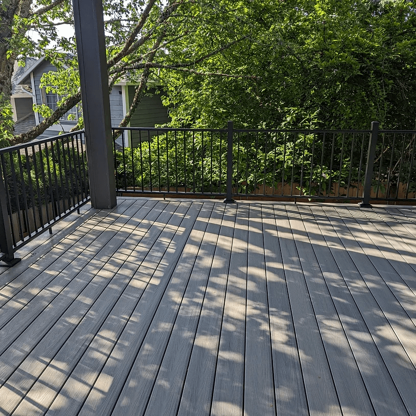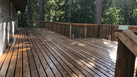 The cedar wood deck is a popular and traditional option customers tend to go with. Many love the look of these decks, especially with a good colored stain to them. However, these decks are becoming more unpopular due to the composite counterparts. It comes with high maintenance due to it being wet here in the Northwest. They are still a great option and have such a beautiful look. Often these decks are paired with a cedar railing to match the deck built.