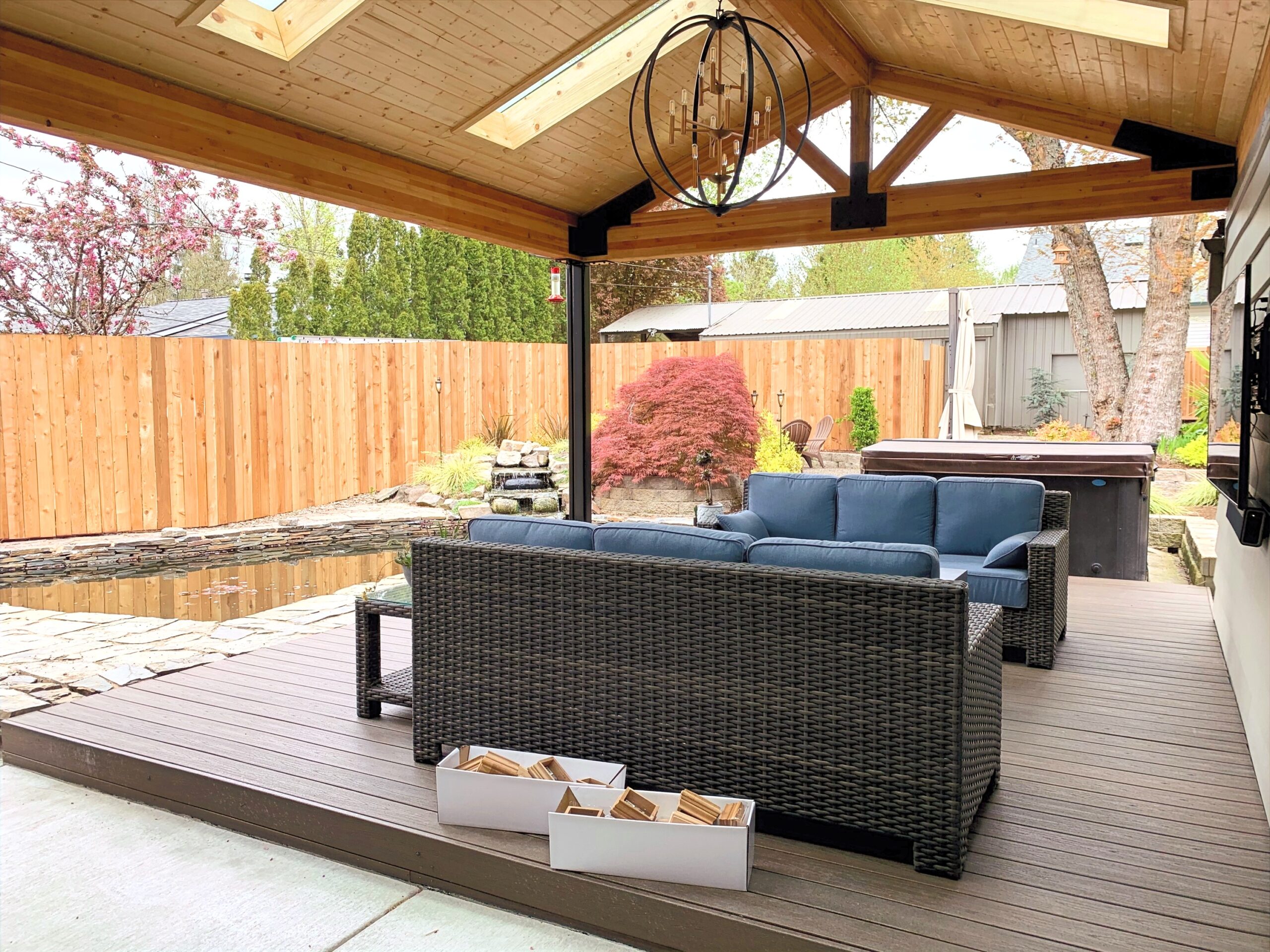At Sunno Construction, we custom-build A-frame covers to match your home’s style and your personal vision. Whether you choose natural cedar or a painted finish, each structure is crafted for long-lasting durability and timeless appeal—designed to elevate how you relax, entertain, and live outdoors.