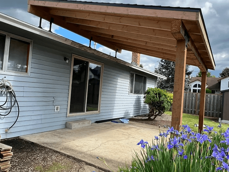 If you want a more secluded and private area for your outdoor living. A closed patio cover may be your go-to. These covers are the same as our A-Frame or Lean-To covers, with the addition of walls covering the sides. It allows for a more weatherproof and private feel. We normally paint match these types of covers unless our customer has instructed us not to. If you are more of a private person or want a more weatherproof structure this will work great for you.